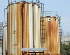 醋酸貯罐上的應(yīng)用:醋酸有強(qiáng)烈的腐蝕性,它的水溶液有弱酸性,能跟許多活潑金屬發(fā)生反應(yīng)。醋酸貯罐外部的彩鋼板已經(jīng)嚴(yán)重腐蝕,彩鋼板壁薄難以除銹。