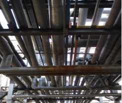 工藝管線上的應(yīng)用:工藝管線腐蝕嚴(yán)重,很多保溫層、管道支架受到破壞。高耐候低表面金屬漆憑借良好的附著力和防護(hù)性能。與鐵皮形成牢固的、堅(jiān)硬密實(shí)的保護(hù)層,使工藝管道的保溫保冷功能得到有效發(fā)揮,保證工藝流程的順利進(jìn)行。具體見(jiàn)圖14、圖15。