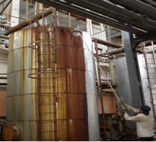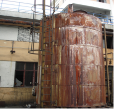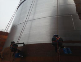 醋酸乙烯貯罐應(yīng)用: 醋酸乙烯具有可燃性,對(duì)貯罐采用噴砂或手工除銹會(huì)產(chǎn)生火花,發(fā)生事故,造成危險(xiǎn)。采用高耐候低表面處理金屬漆不須噴砂和除銹,可直接涂刷罐體,高效快捷。見(jiàn)圖10、圖11。