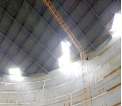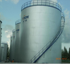 潤(rùn)滑油貯罐內(nèi)壁上的應(yīng)用: 大慶引航潤(rùn)滑油儲(chǔ)油罐由于儲(chǔ)罐常年不能都滿負(fù)荷儲(chǔ)油,長(zhǎng)期沒(méi)有在油里浸泡的部份也會(huì)產(chǎn)生銹蝕,從而影響油品質(zhì)量。封銹金屬漆能很好的解決這類難題,保證儲(chǔ)油罐在不裝滿或不使用時(shí)產(chǎn)生銹蝕。確保油品儲(chǔ)存過(guò)程中的純凈度。具體見(jiàn)圖33、圖34。經(jīng)過(guò)十幾年應(yīng)用效果很好。