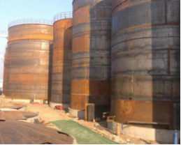 高耐候低表面處理漆以其良好的耐酸性和特殊封銹性能,可直接涂在生銹金屬表面,與原有的銹蝕相融合,將所有之銹蝕孔隙充實(shí)。具體見(jiàn)圖7、圖8。涂裝后的罐群見(jiàn)圖9。