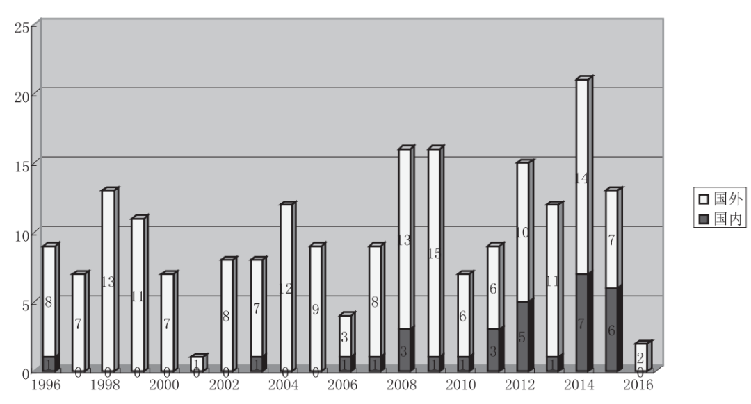2.1 1996—2016 年國內(nèi)外申請量分布