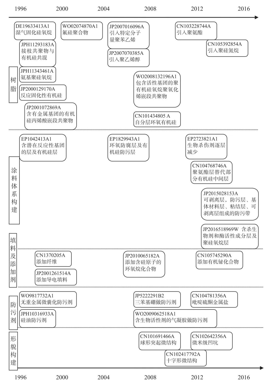 圖 5 低表面能有機(jī)硅船舶防污涂料技術(shù)演進(jìn)路線